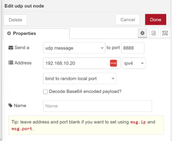 UDP Out node configuration